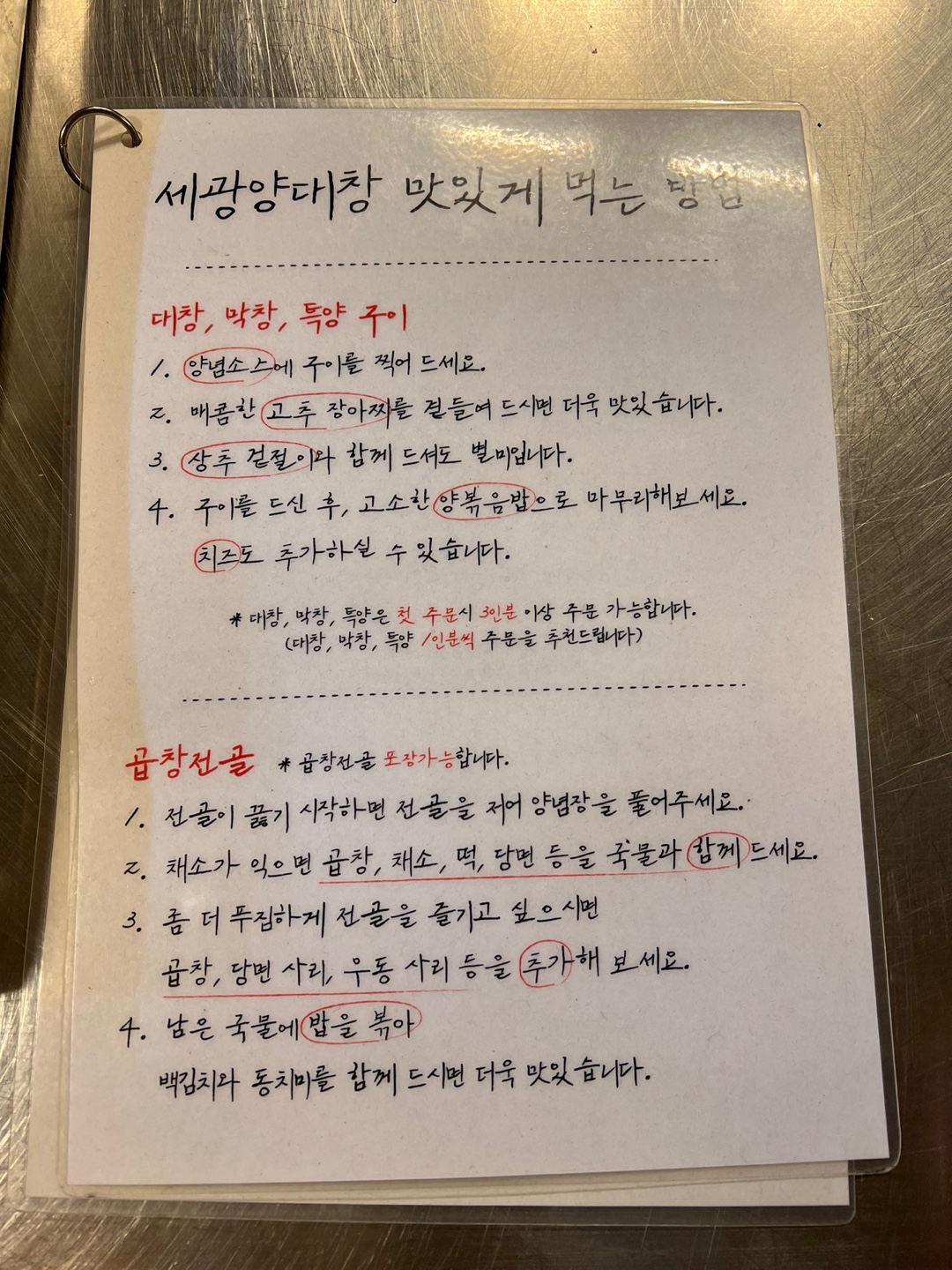 역삼 gs타워에 있는 세광양대창을 방문하고