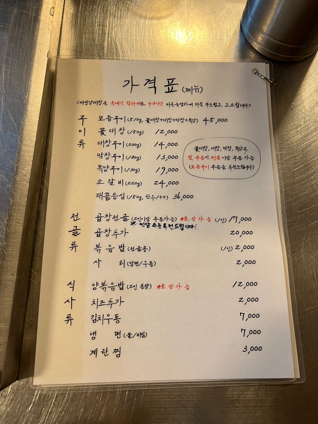그래서 이번 방문에는 애초에 꽃대창으로만